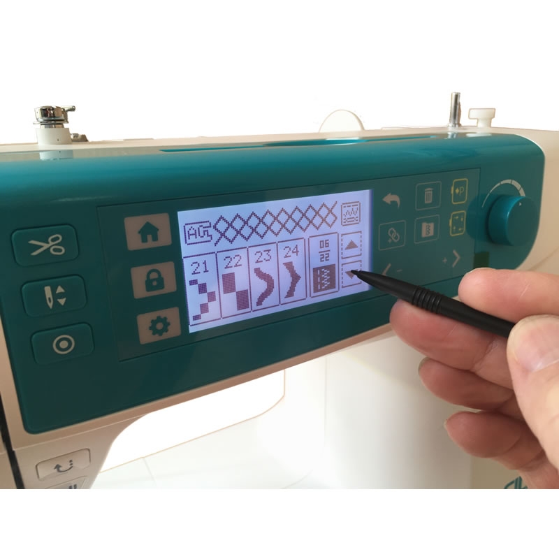 To get you started, It has 100 built-in embroidery designs, 120 frame patterns and six different font styles, ready for you to mirror, rotate and resize to suit your ideas. The machine has a full touch screen capability and comes with a stylus, making it even easier to use all of the features it offers. It also have a USB feature on the machine that enables you to download embroidery designs online (in PES or DST file format only) to use on the machine, expanding your potential even more.